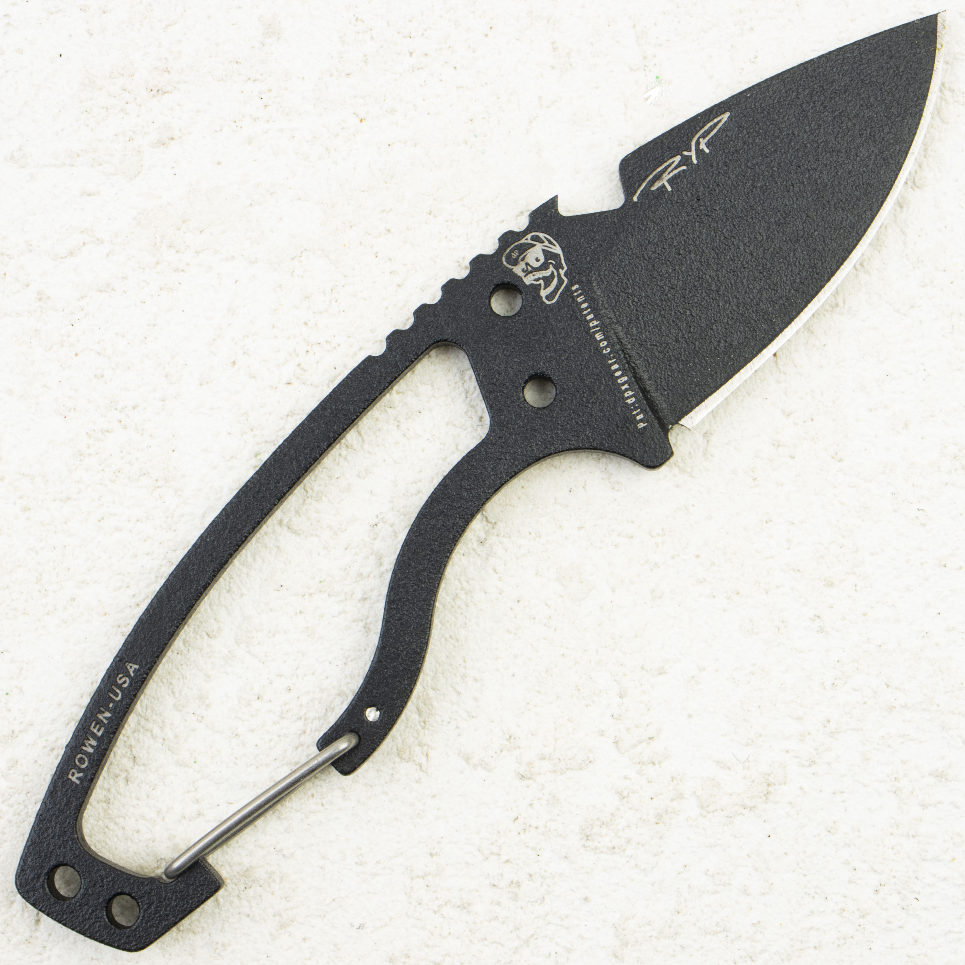 Рукоять скелетной конструкции выполнена в чёрном цвете, что снижает вес ножа и обеспечивает уверенный хват. Такая конструкция способствует контролю над ножом и быстрому высыханию при контакте с влагой.