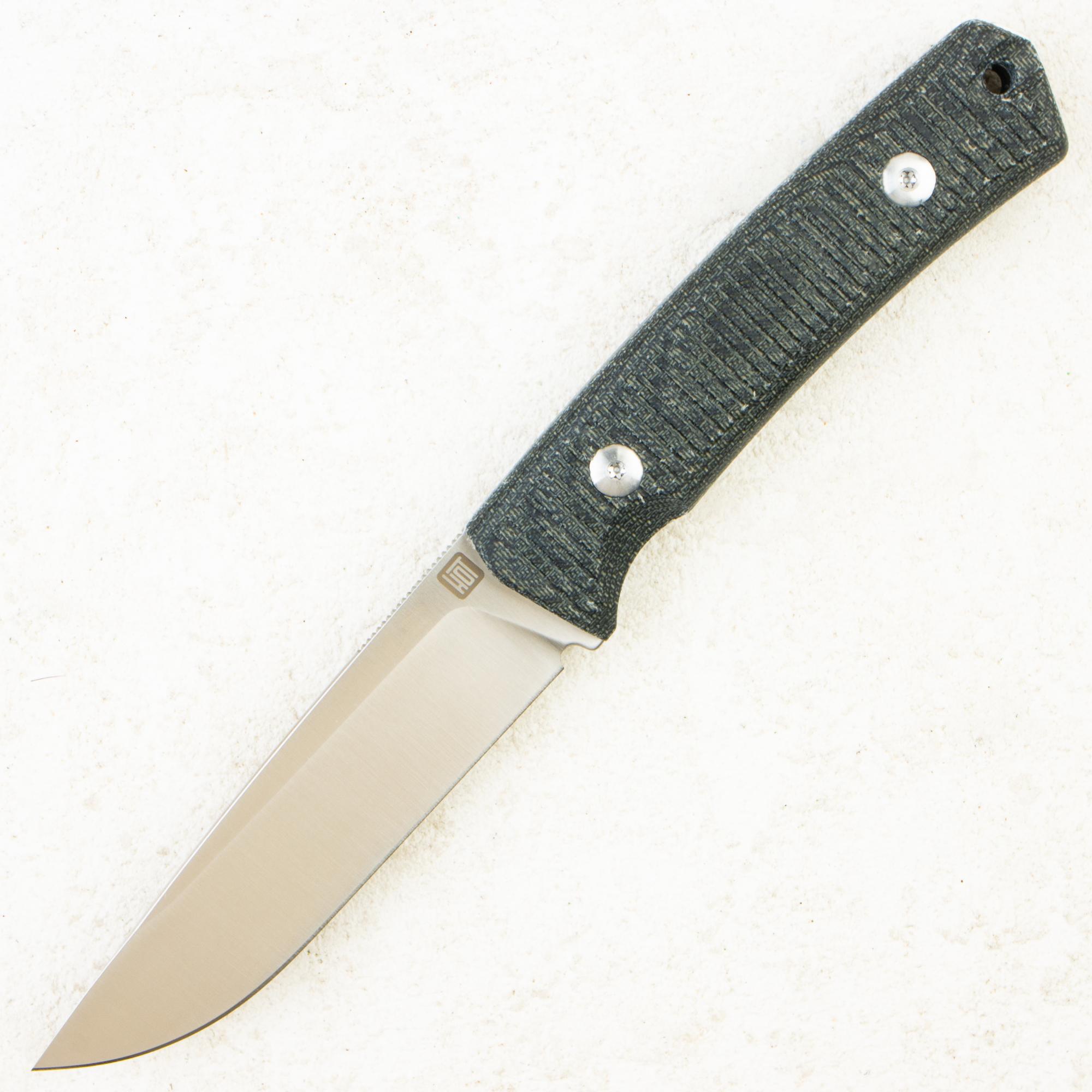 Для рукояти используются практичные и проверенные материалы — микарта и G10, обеспечивающие надёжный хват и устойчивость к влаге и износу. Клинки изготавливаются из сбалансированных, недорогих, но качественных сталей, оптимальных для регулярного использования и простой заточки.