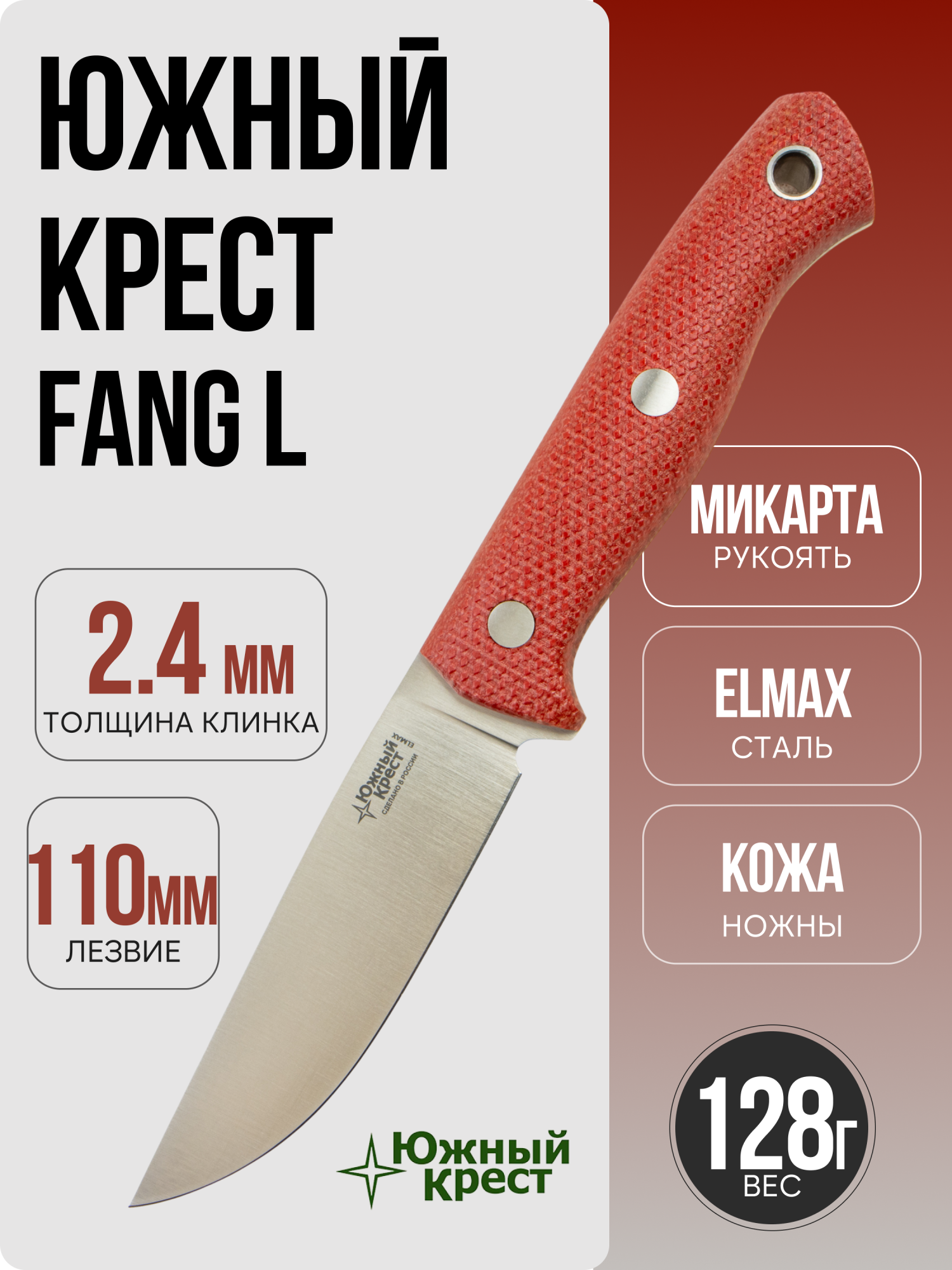 Нож Южный Крест Fang L, Elmax, Micarta Red, Насечка, 252