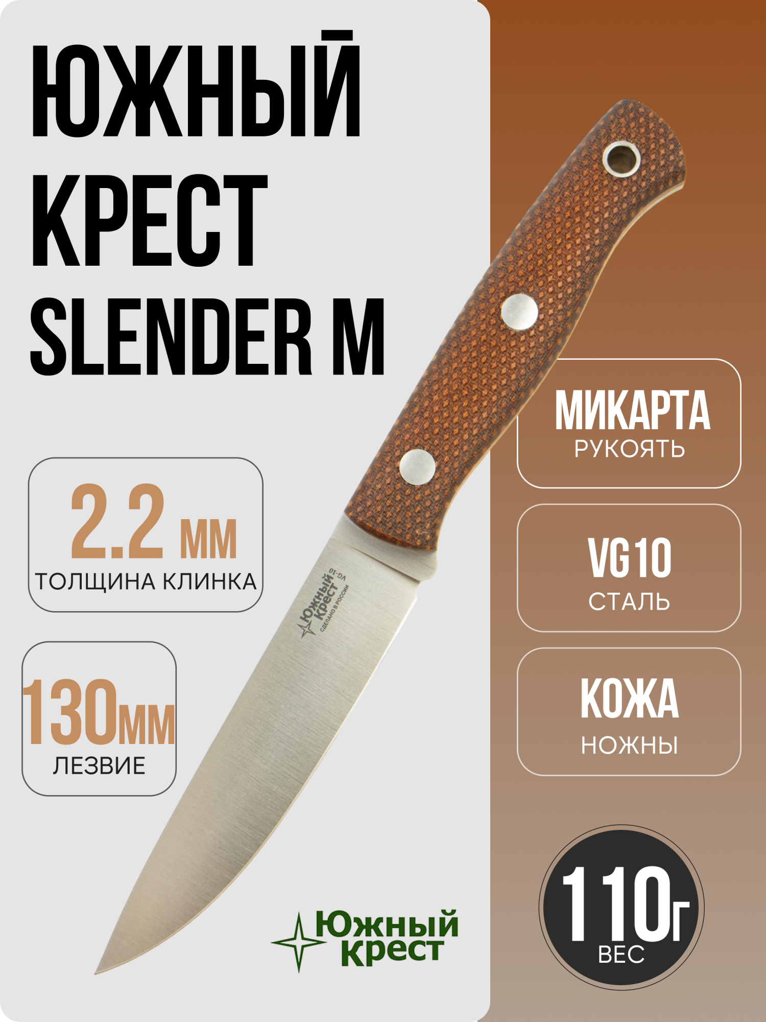 —Нож Южный Крест Slender M, VG-10, Micarta, 212