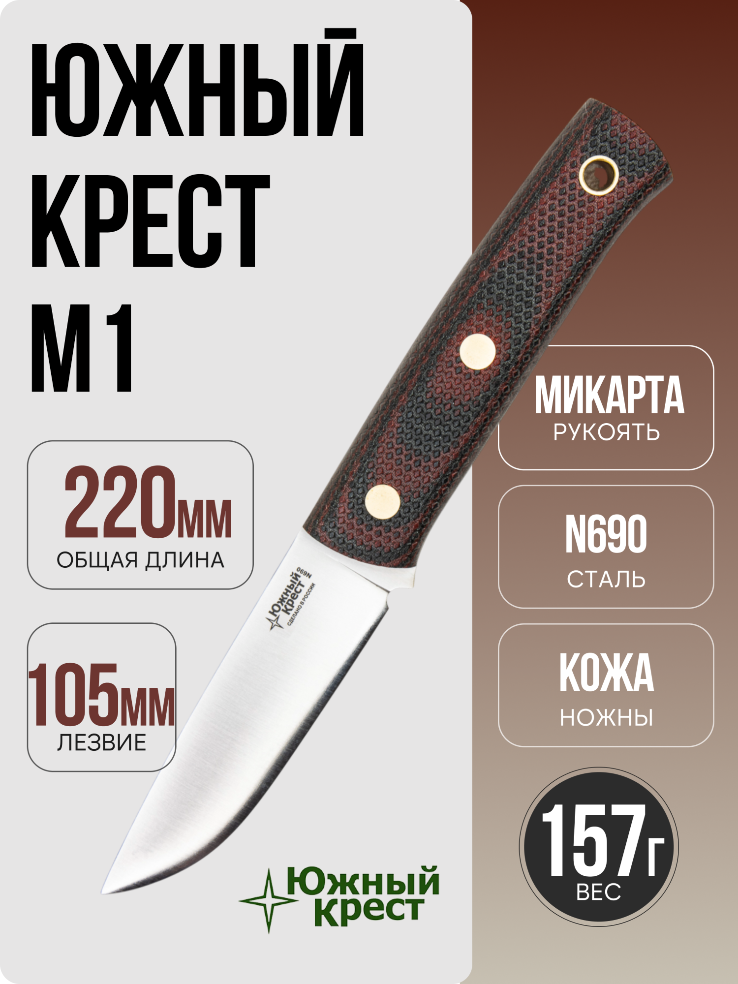 Нож Южный Крест М1, N690, Конвекс, Микарта Красно-Черная.