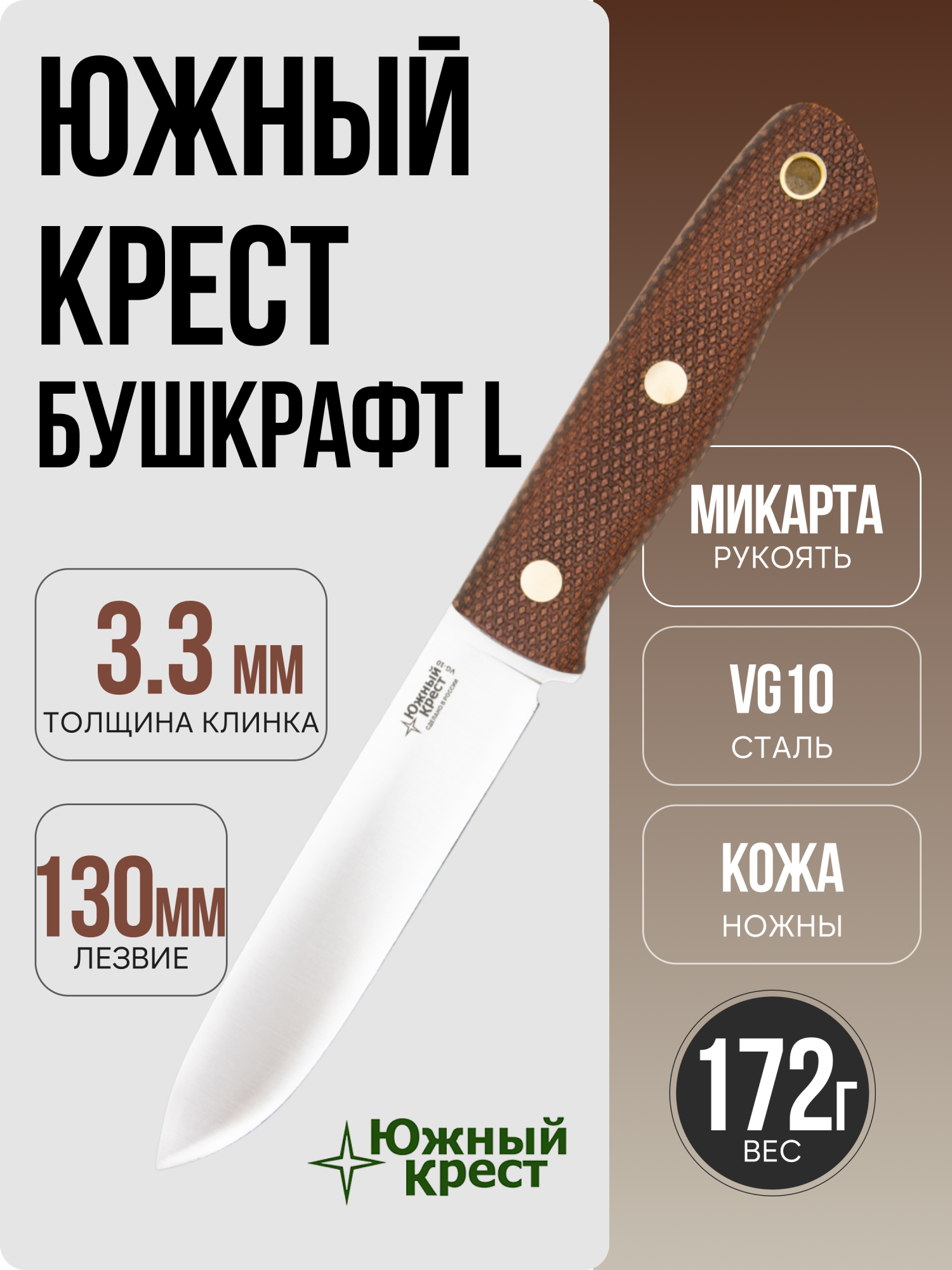 Нож Южный Крест Бушкрафт L. Клинок изготовлен из высококачественной нержавеющей стали VG-10,