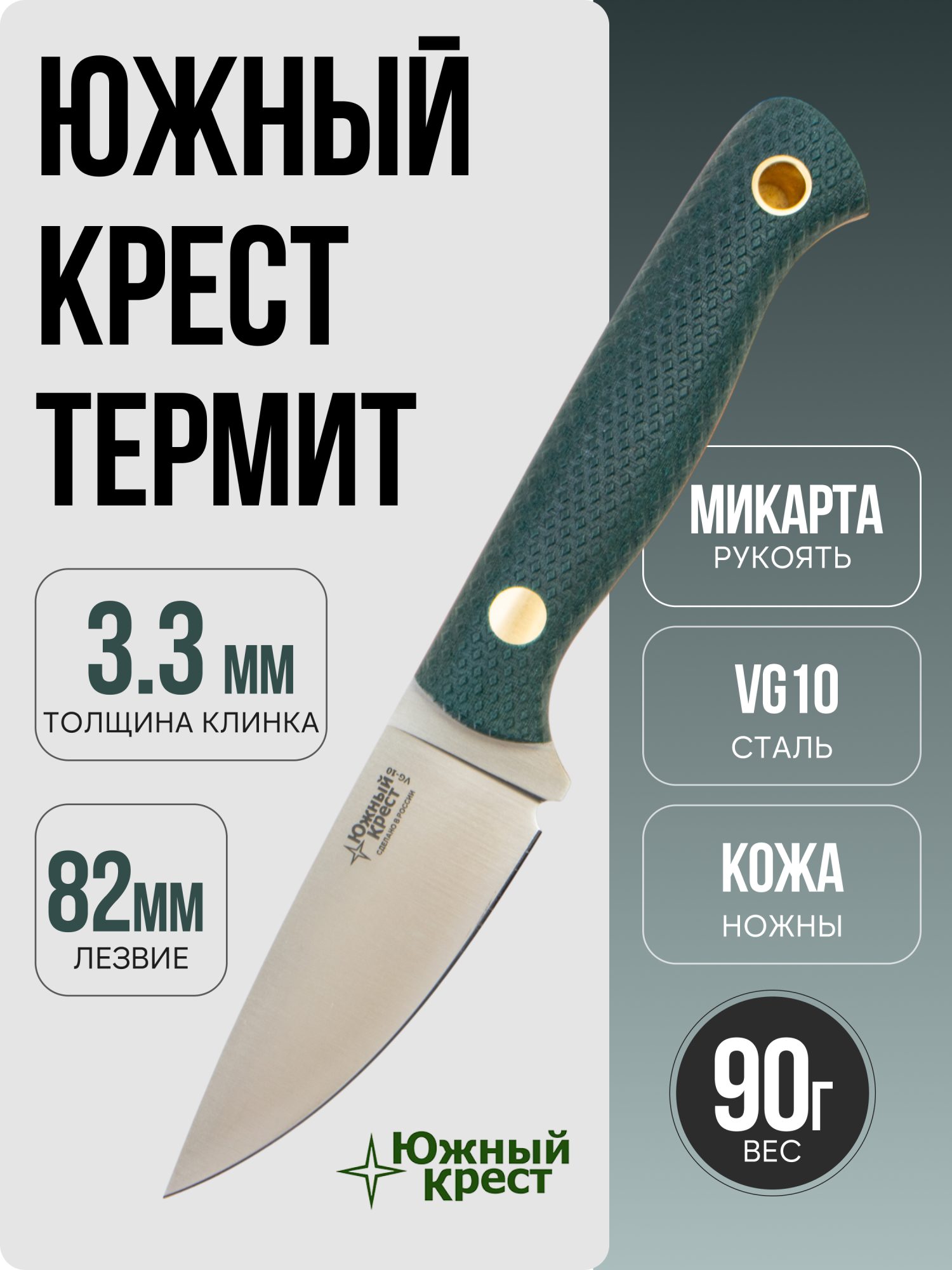 Нож "Южный Крест Термит" — это прекрасный выбор для любителей ножей, которые ищут надежный и прочный инструмент для походов, кемпинга или для выполнения повседневных задач.