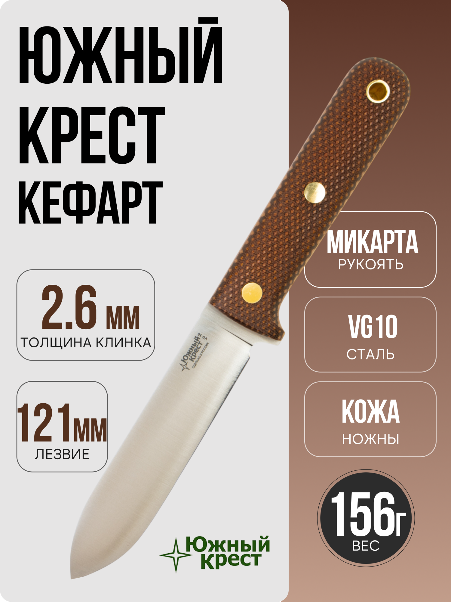Нож "Южный Крест Кефарт" является высококачественным инструментом, предназначенным для широкого спектра задач, от походных до повседневных.