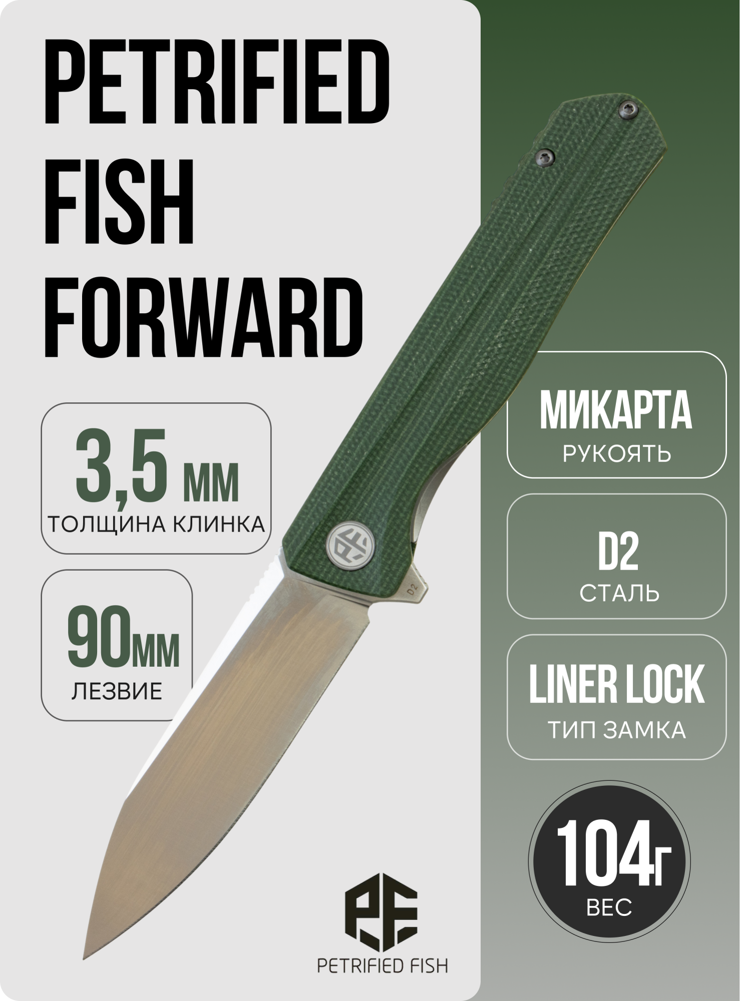 Нож Petrified Fish Forward — это универсальный складной нож с клинком из высокоуглеродистой инструментальной стали D2, обработанной сатиновой отделкой для защиты от коррозии и обеспечения отличной режущей способности. Клинок имеет практичную форму, позволяющую эффективно выполнять как точные, так и силовые работы, сохраняя долговечность и надёжность режущей кромки.