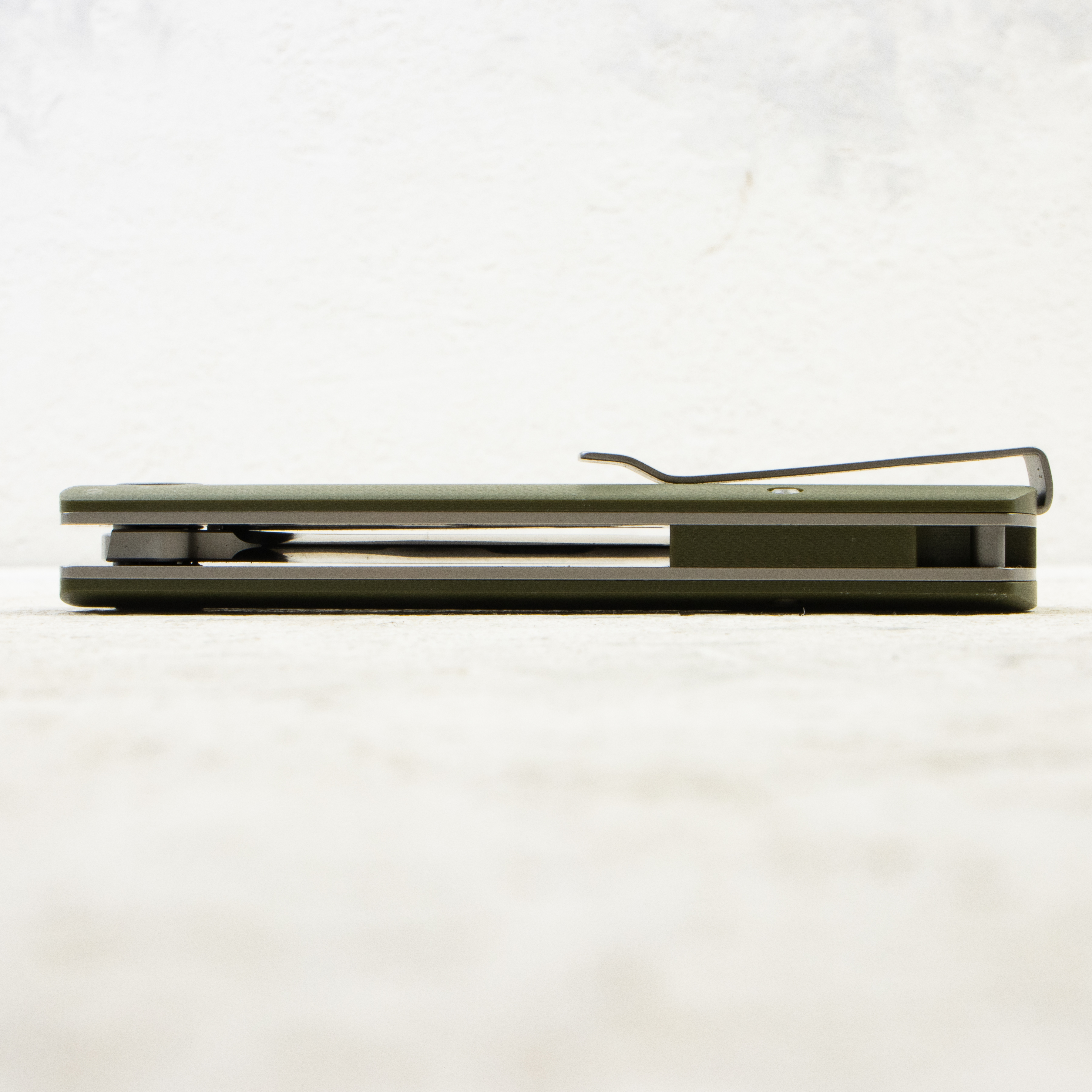 Клинок имеет форму drop point и удобную геометрию, которая обеспечивает универсальность и контроль при резе. Его длина составляет 93 мм, толщина обуха — 3.9 мм, что добавляет уверенности при силовой нагрузке.
