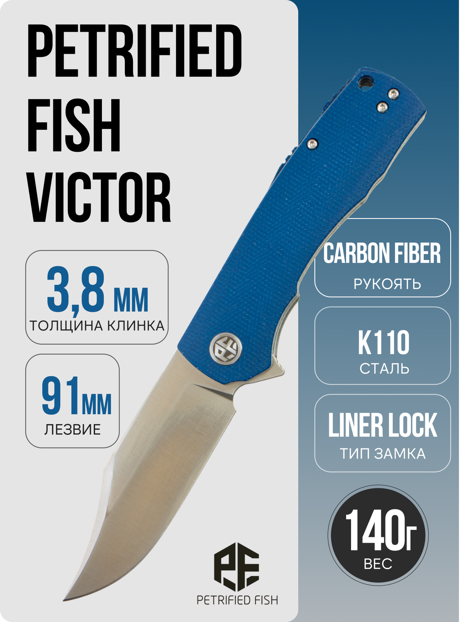 Petrified Fish Victor PFP03 — «честный» городской фолдер с акцентом на функционал и тактильность. Спокойный внешний вид, ровные плоскости клинка и микарта без лишнего блеска — нож выглядит как инструмент, который сразу готов к работе.