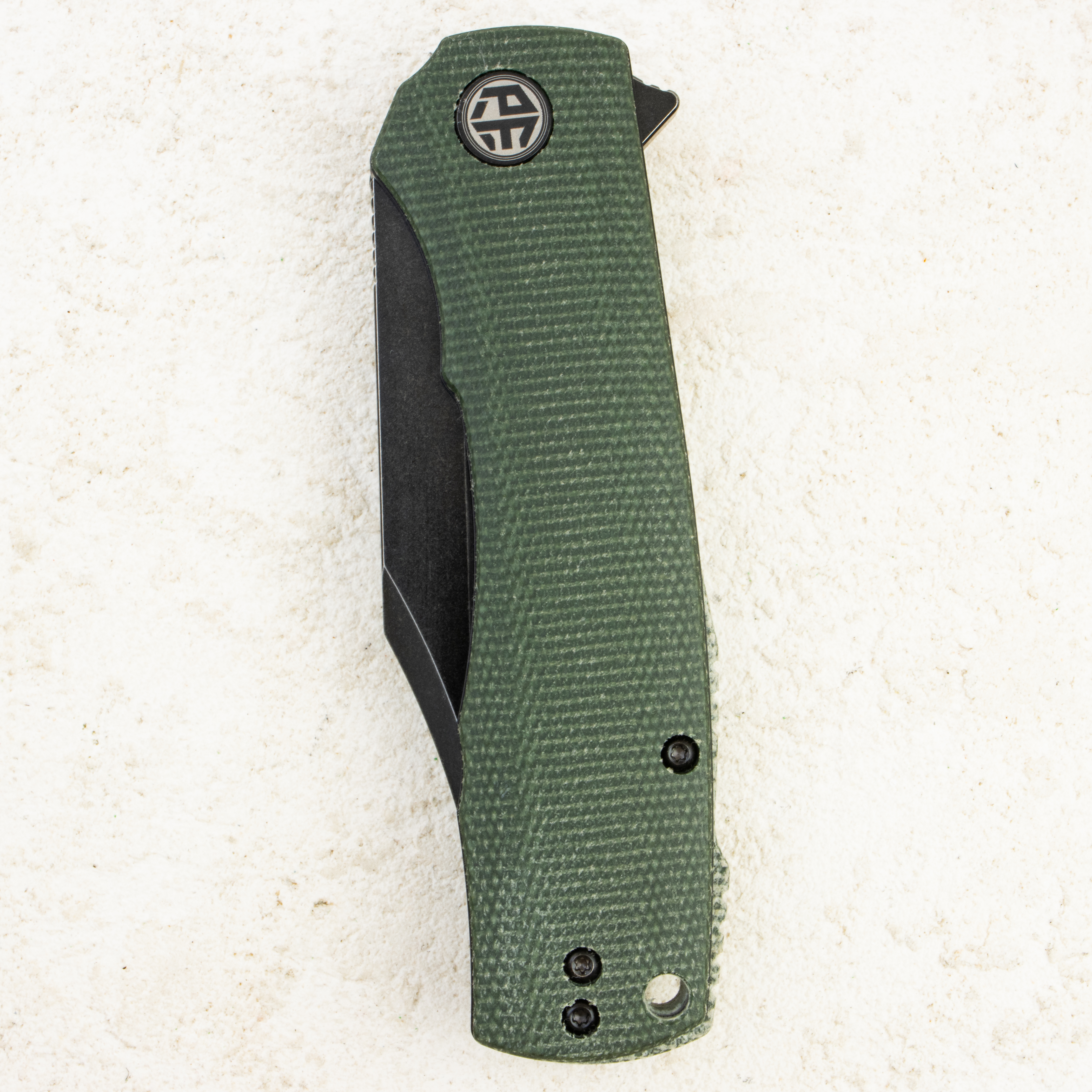 PFP03GRMW - Black Stonewashed, Micarta Green Handle,;