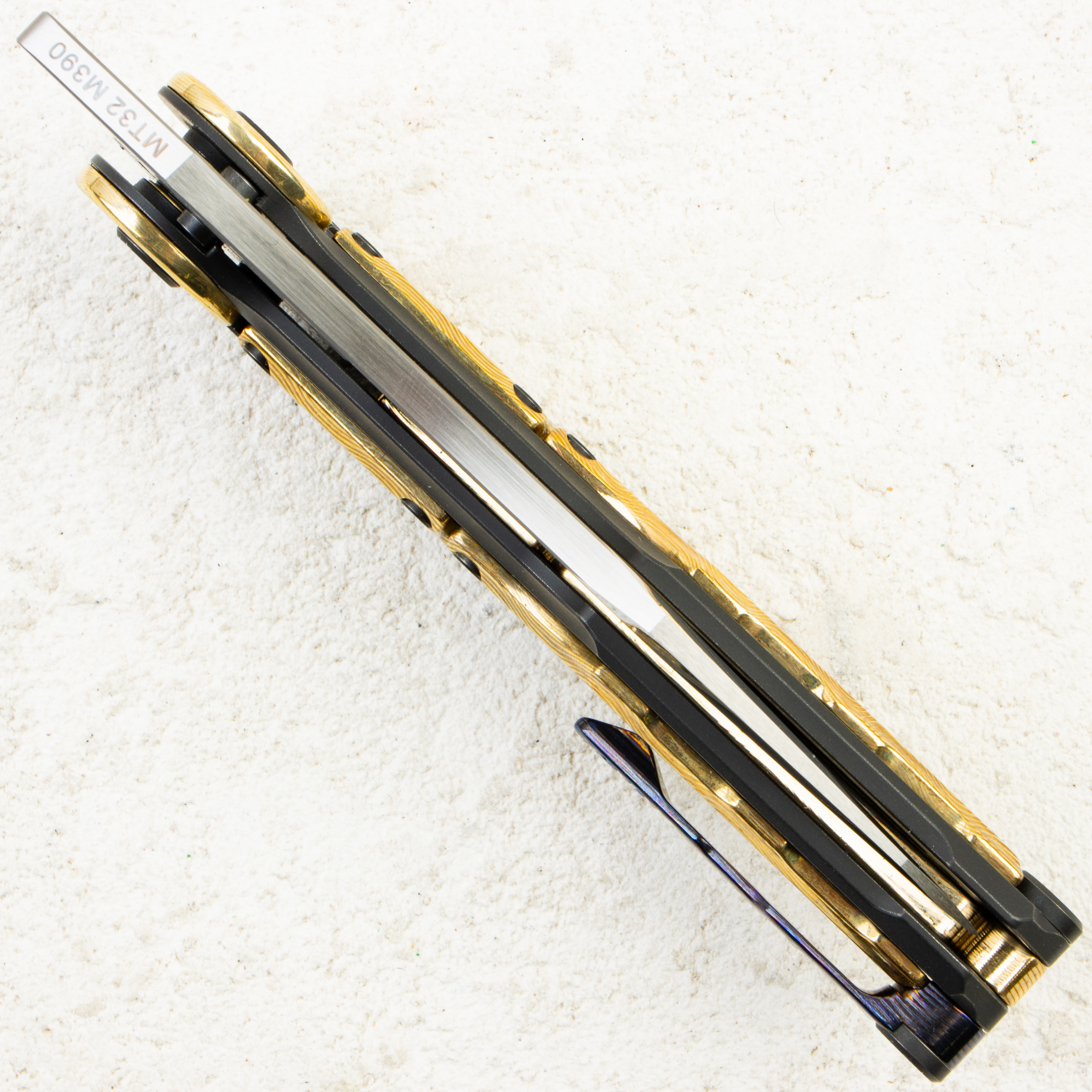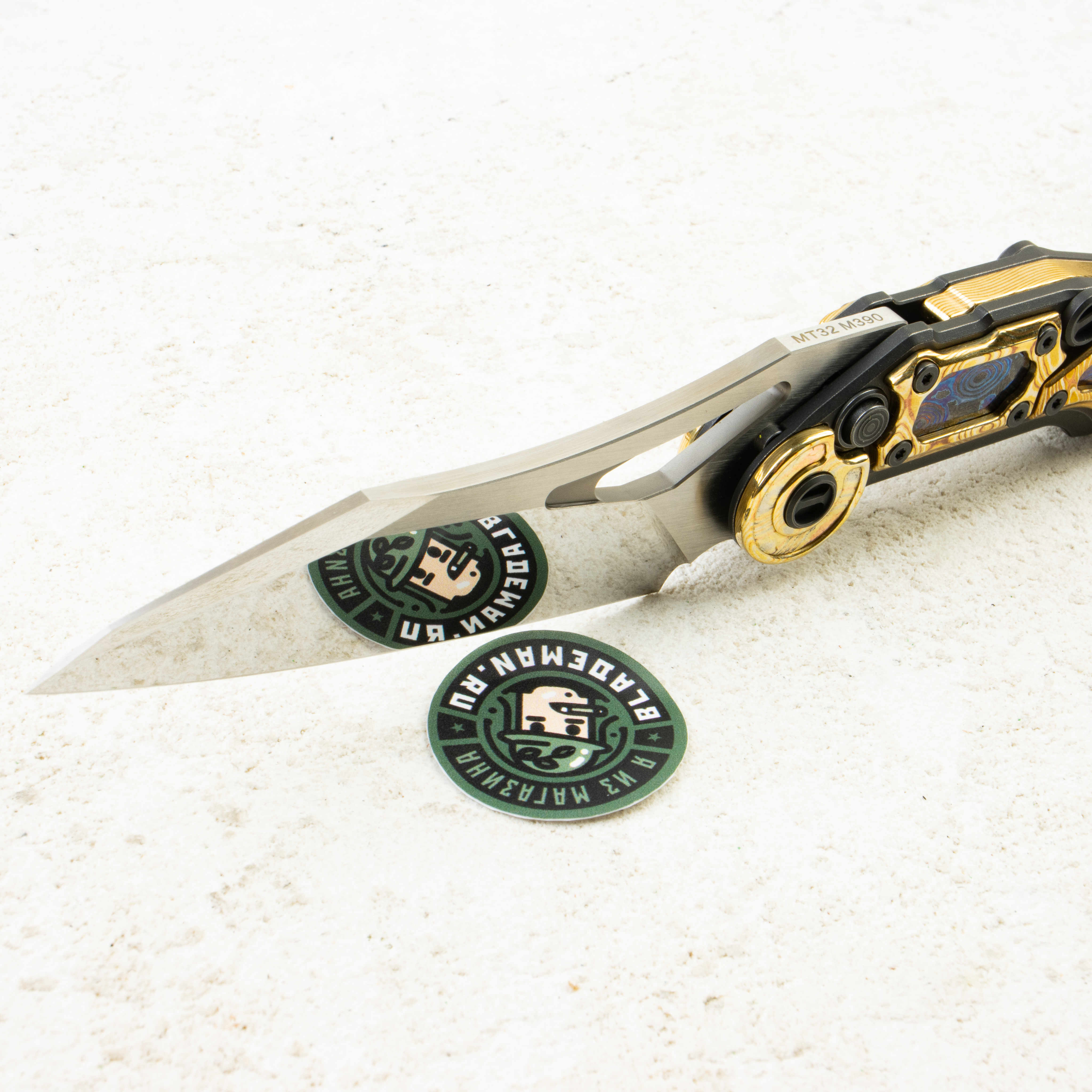 Сталь Böhler M390 (59–61 HRC) отвечает за практику: долгое удержание кромки, стойкость к коррозии и предсказуемая правка. Плоские спуски и прямолинейная РК wharncliffe дают честный, контролируемый рез — по картону, стропе, пластикам, с точным «подрезом» на плоскости. Толщина обуха 4 мм добавляет поперечной стабильности на плотных материалах, а зеркальный финиш легко поддерживать в чистоте.