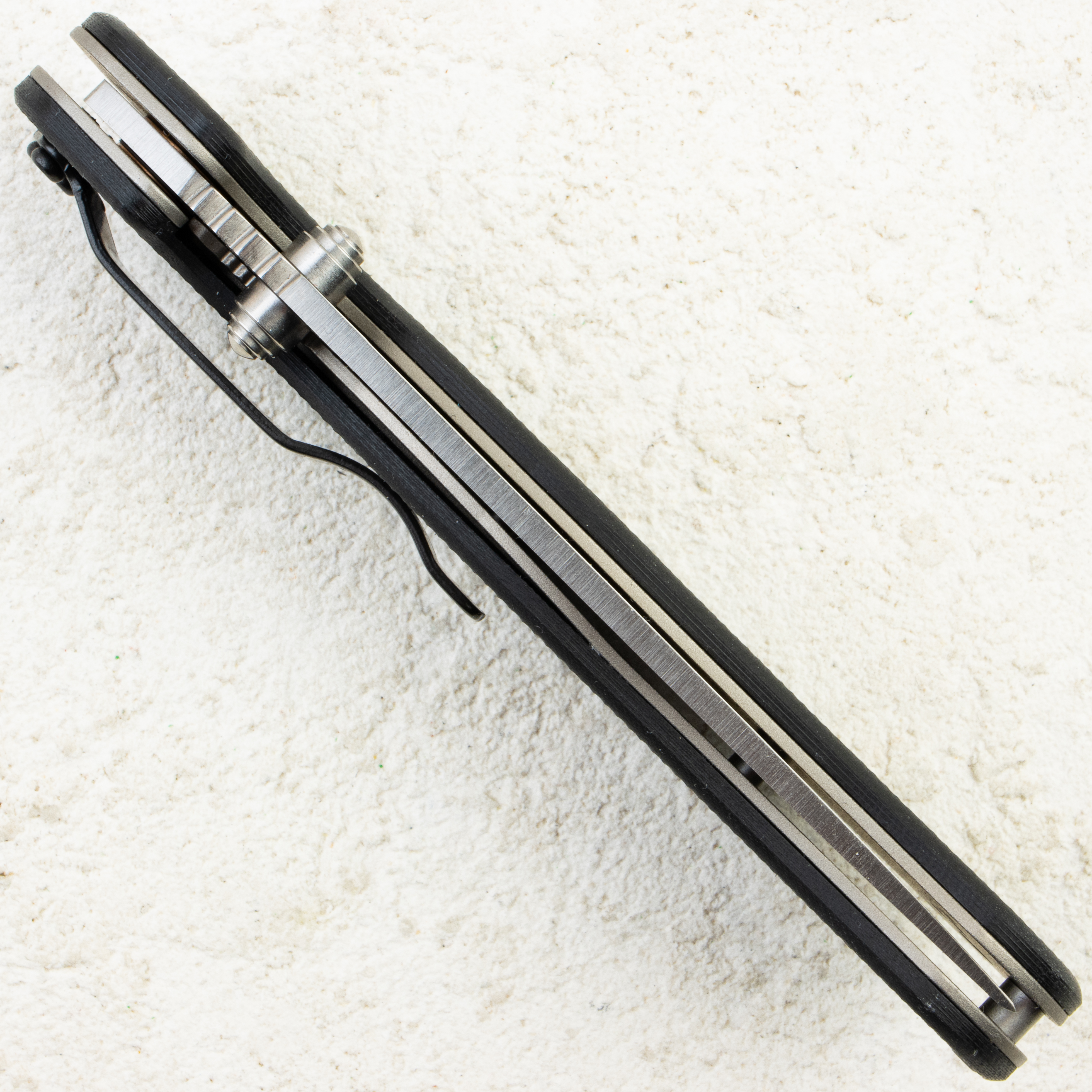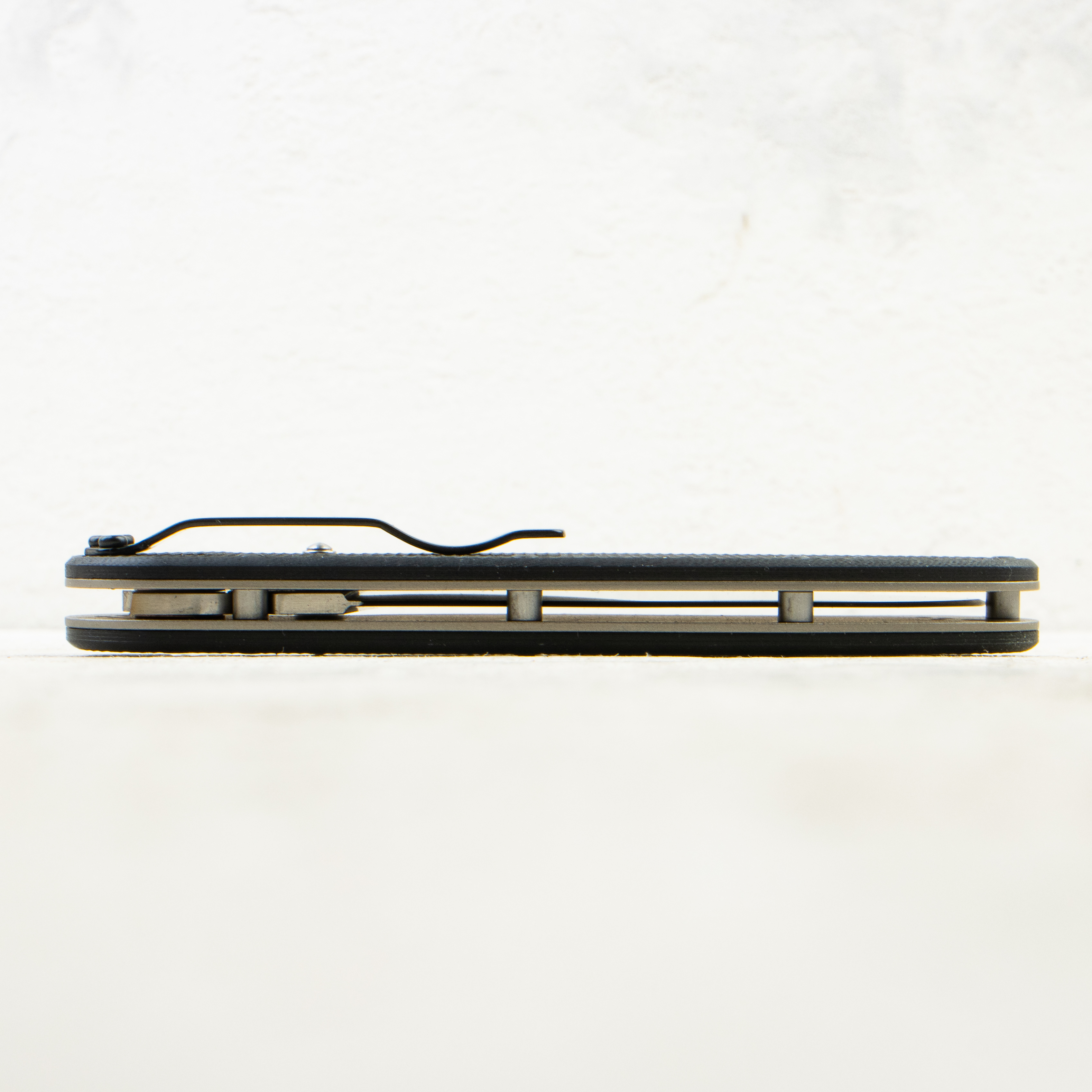 Механика надёжная и понятная. Открывание — двухсторонние шпеньки, удобно правше и левше, в том числе в перчатках. Замок — liner lock, фиксирует клинок жёстко и закрывается интуитивно. Посадка в кармане гибкая: клипса четырёхпозиционная (tip-up/tip-down, правая/левая сторона), предусмотрено отверстие под темляк. Производство — Тайвань, что чувствуется по стабильной геометрии и аккуратной сборке.