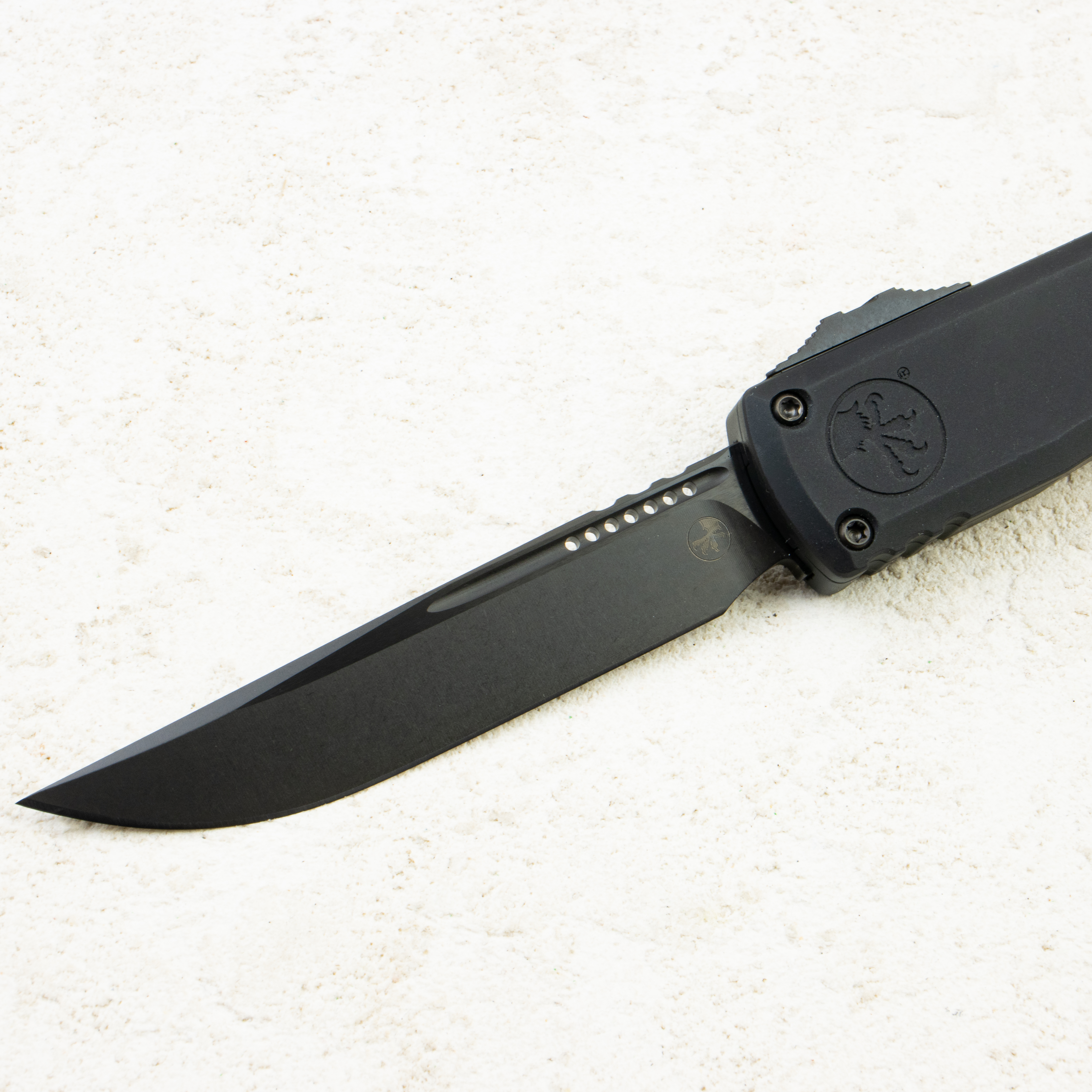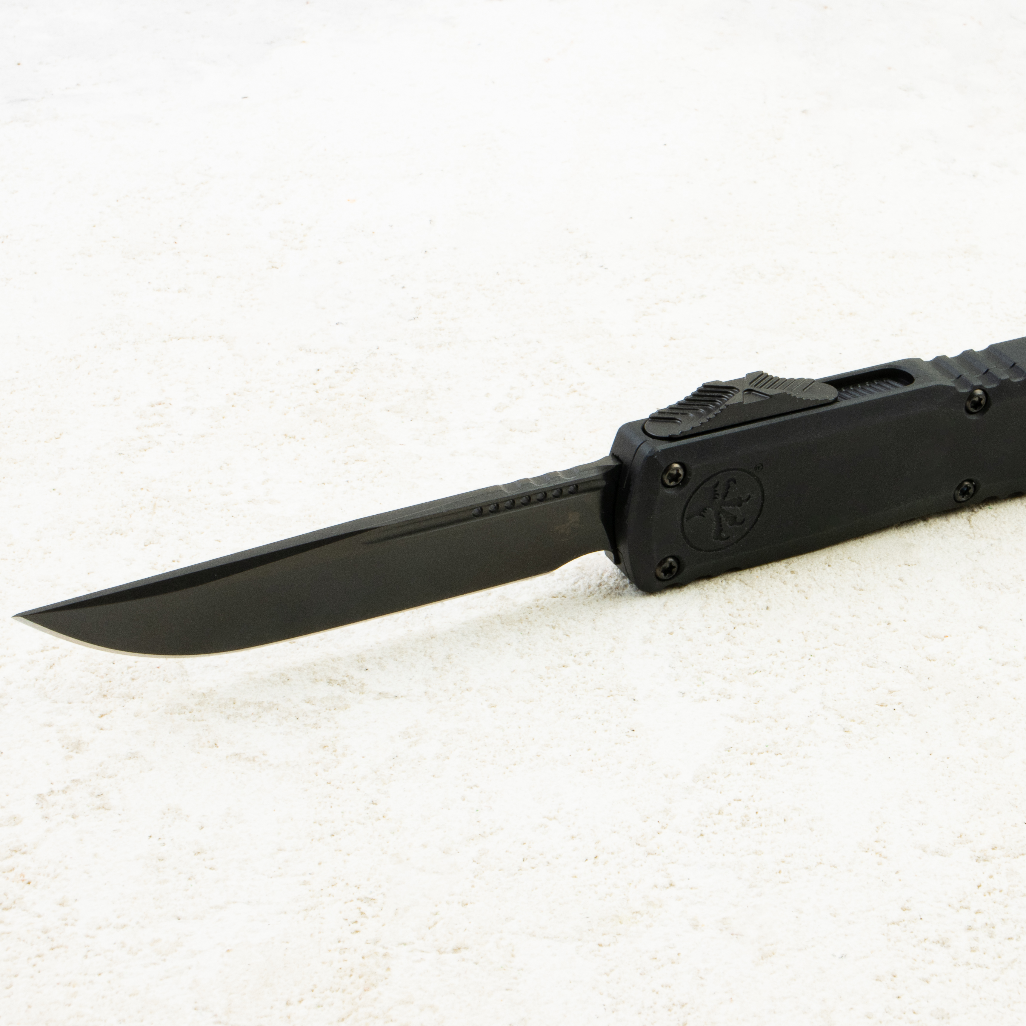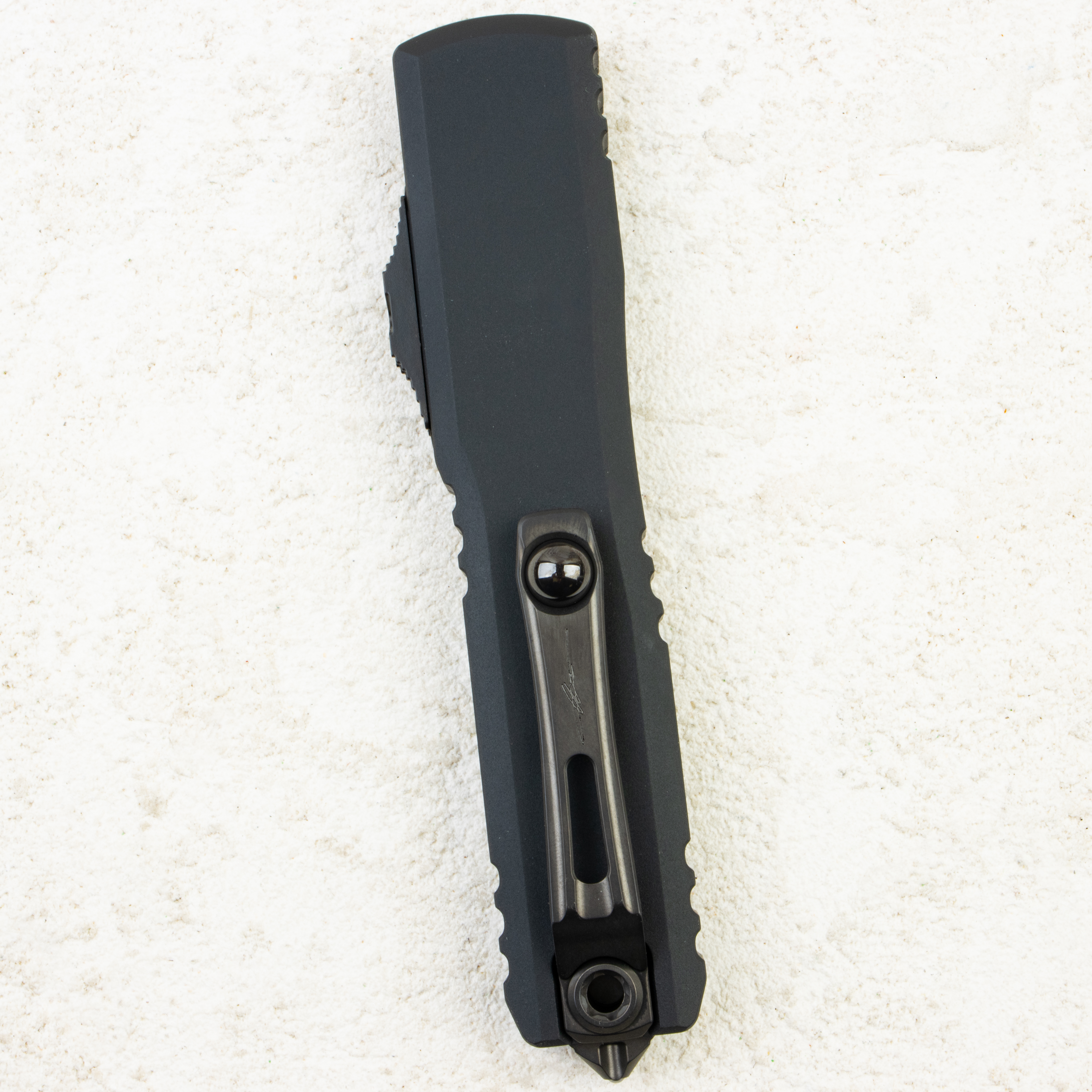 Microtech Ultratech ZBP Gen III Shadow — флагманский OTF нового поколения, созданный для тех, кому нужен быстрый доступ к клинку без компромиссов по жёсткости узла. Чёрный DLC-клинок в визуально сливается с полностью «затемнённой» фурнитурой Shadow, а матово-чёрная анодированная рукоять сохраняет строгий, утилитарный характер модели. Это версия Signature Series — на клипсе фирменная подпись Marfione и единый чёрный тон деталей.