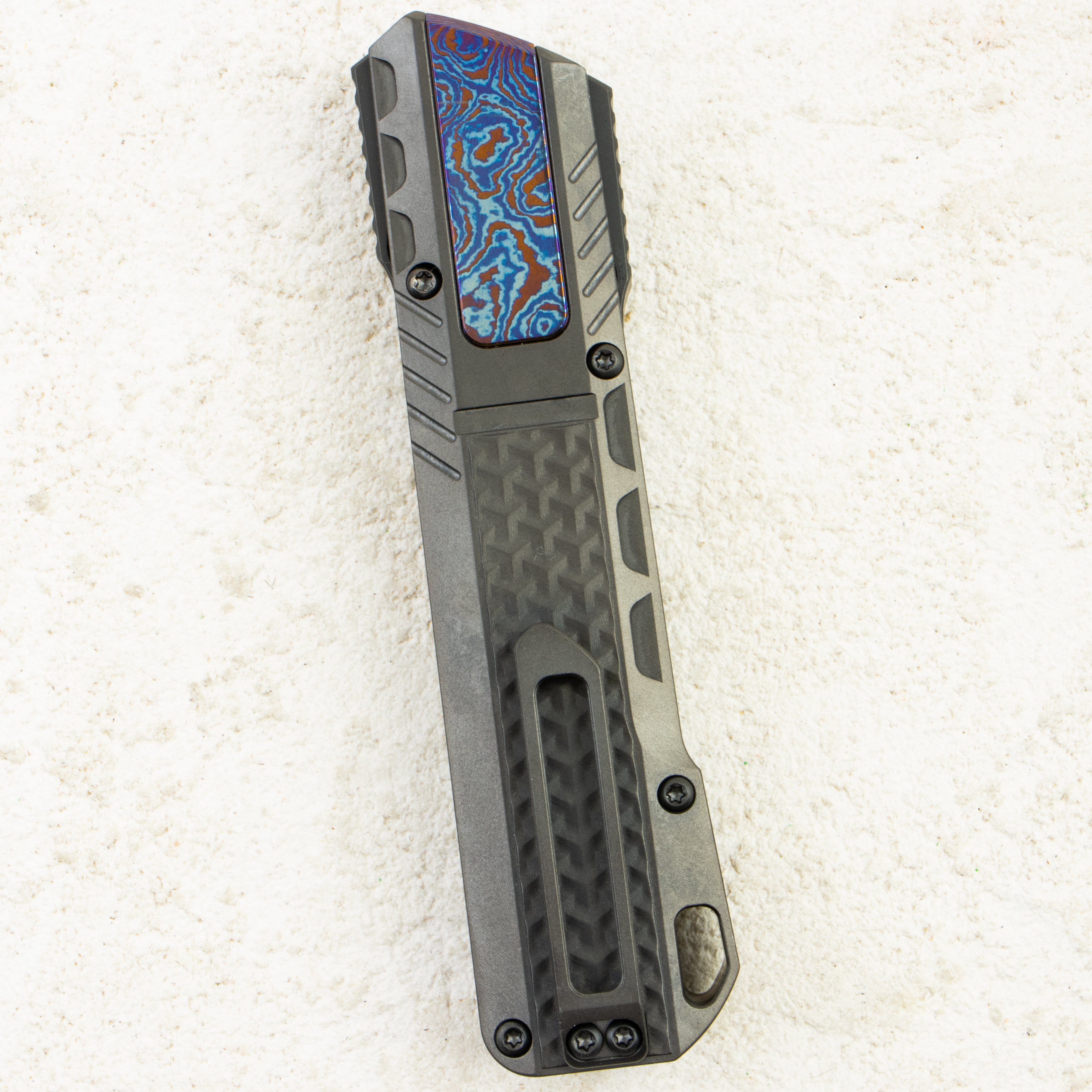 ZL301D — «тёмная» версия: DLC-клинок и тёмный титановый корпус с инлеем из тимаскуса. Выглядит наиболее «коллекционно» за счёт переливов узора и полностью чёрной подачи, оставаясь при этом тем же компактным, лёгким и «честным» в работе Sharp Leopard.
