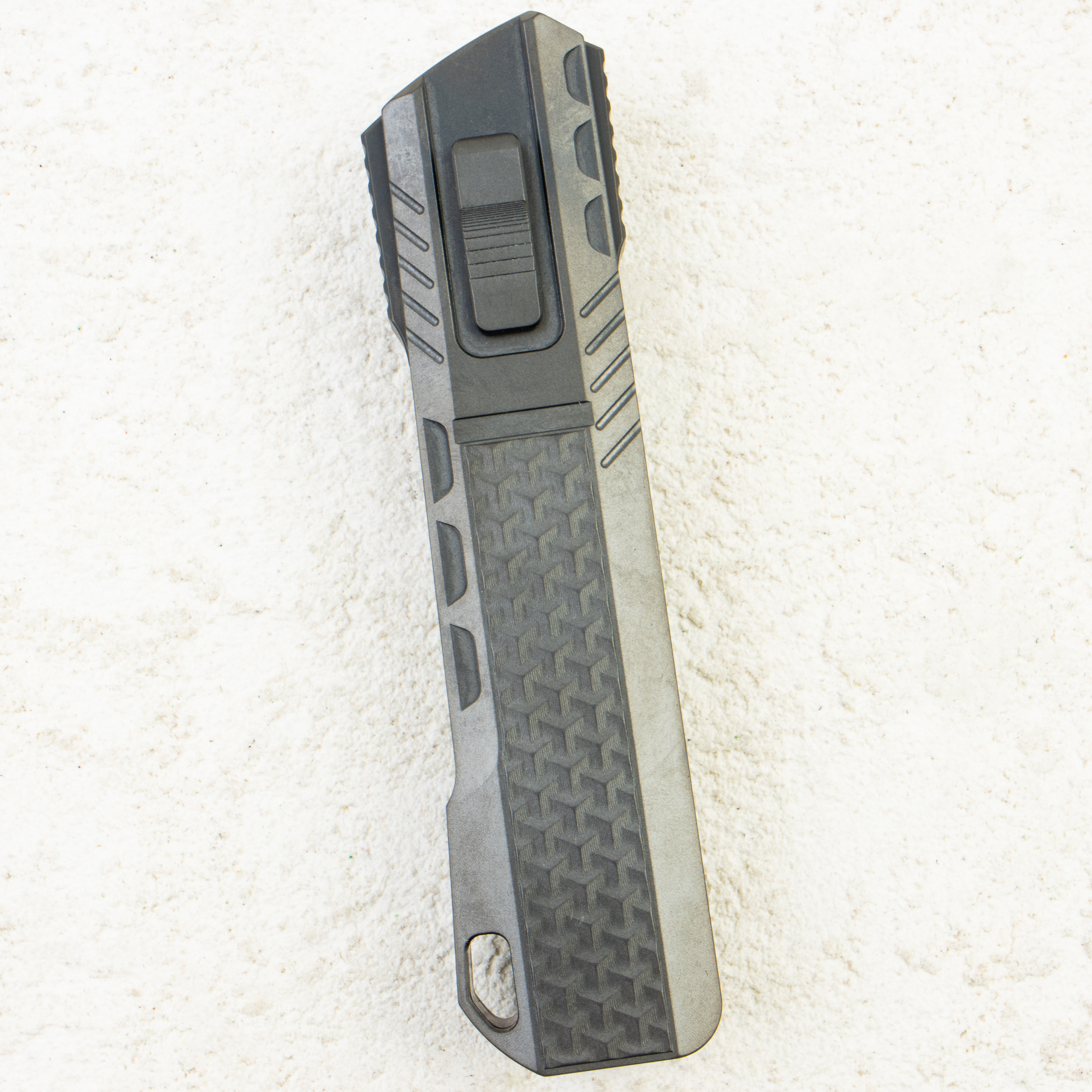 Фишка модели — авторский слайд-замок Remette: клинок разблокируется ползунком и выходит за счёт инерции/гравитации, после чего фиксируется жёстко; обратное движение столь же контролируемо и безопасно для пальцев. Схема ощущается «сухой» и предсказуемой, без люфтов и лишних усилий, что выделяет Sharp Leopard на фоне классических лайнеров и кнопок.