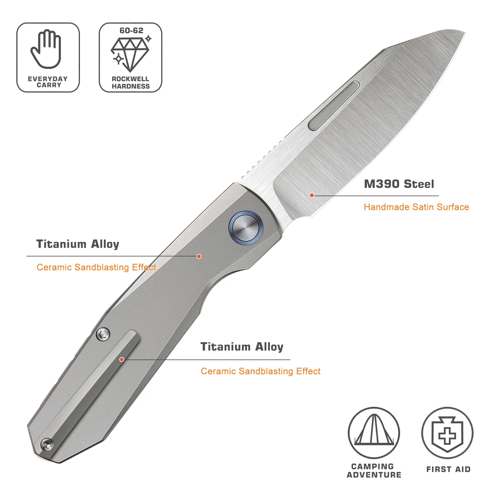 Remette Squirrel — компактный премиальный фолдер с «тихой» эстетикой и современной начинкой. Здесь рабочая порошковая M390 сочетается с титановым корпусом, а выверенные пропорции делают нож удобным для ежедневного ношения: общая длина 180 мм, в сложенном виде 100 мм, клинок 72 мм, обух 3 мм, толщина рукояти 10 мм, вес 92 г. Визуально модель собрана и аккуратна: чистые плоскости клинка, ровные фаски и аккуратная фурнитура без лишнего блеска.
