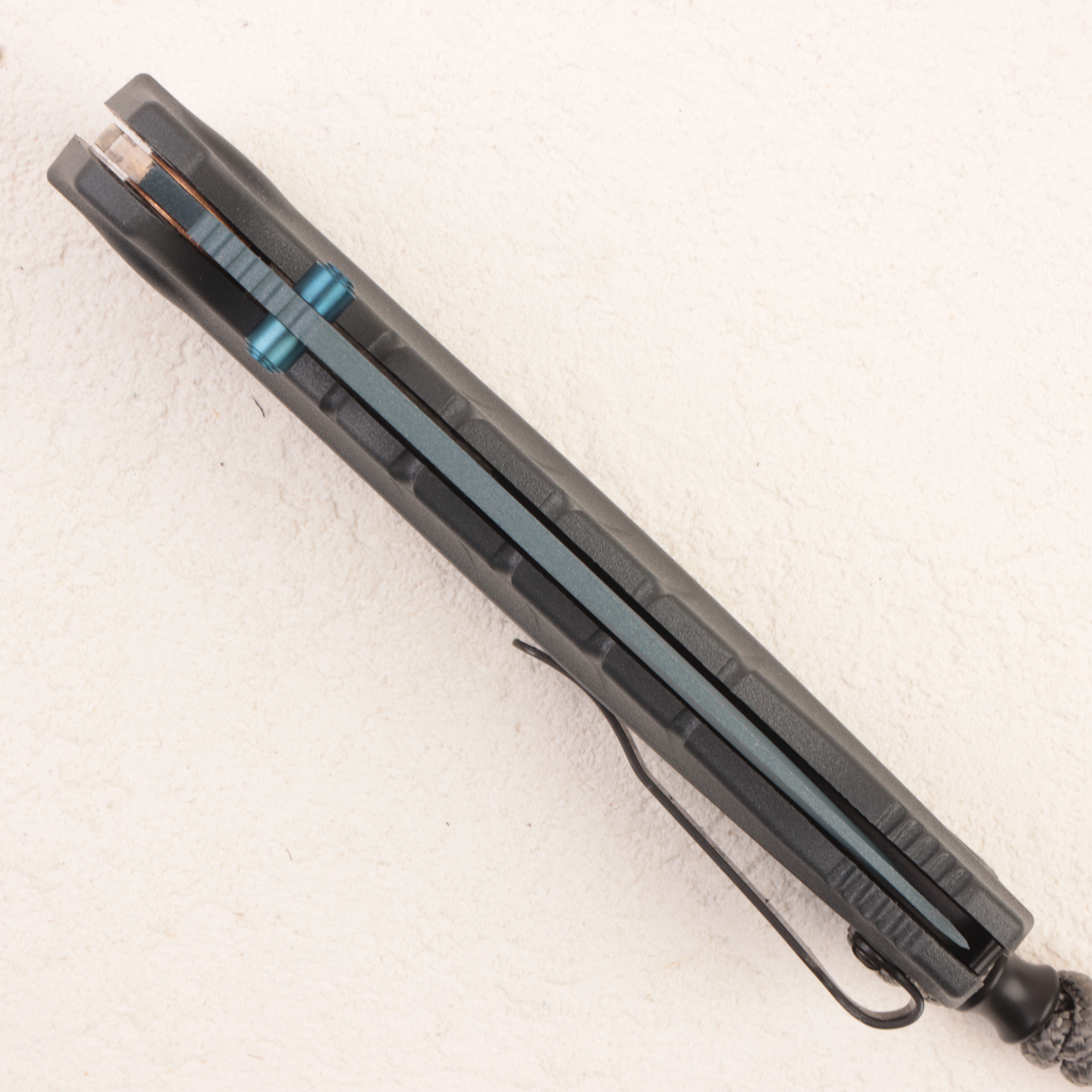 Главная особенность именно этой версии — рукоять из Grivory цвета штормовой серый. Этот материал помогает сохранить нож сравнительно легким, но при этом достаточно прочным и устойчивым к влаге для реальной полевой эксплуатации. Профильные магазины также отмечают синие элементы фурнитуры и темляк серого цвета, а сама конструкция построена на фирменном AXIS Lock с коррозионностойкими элементами, что особенно важно для ножа, рассчитанного на контакт с водой. Глубокая клипса рассчитана на ношение острием вверх, а двусторонний шпенек делает нож одинаково удобным для правшей и левшей.