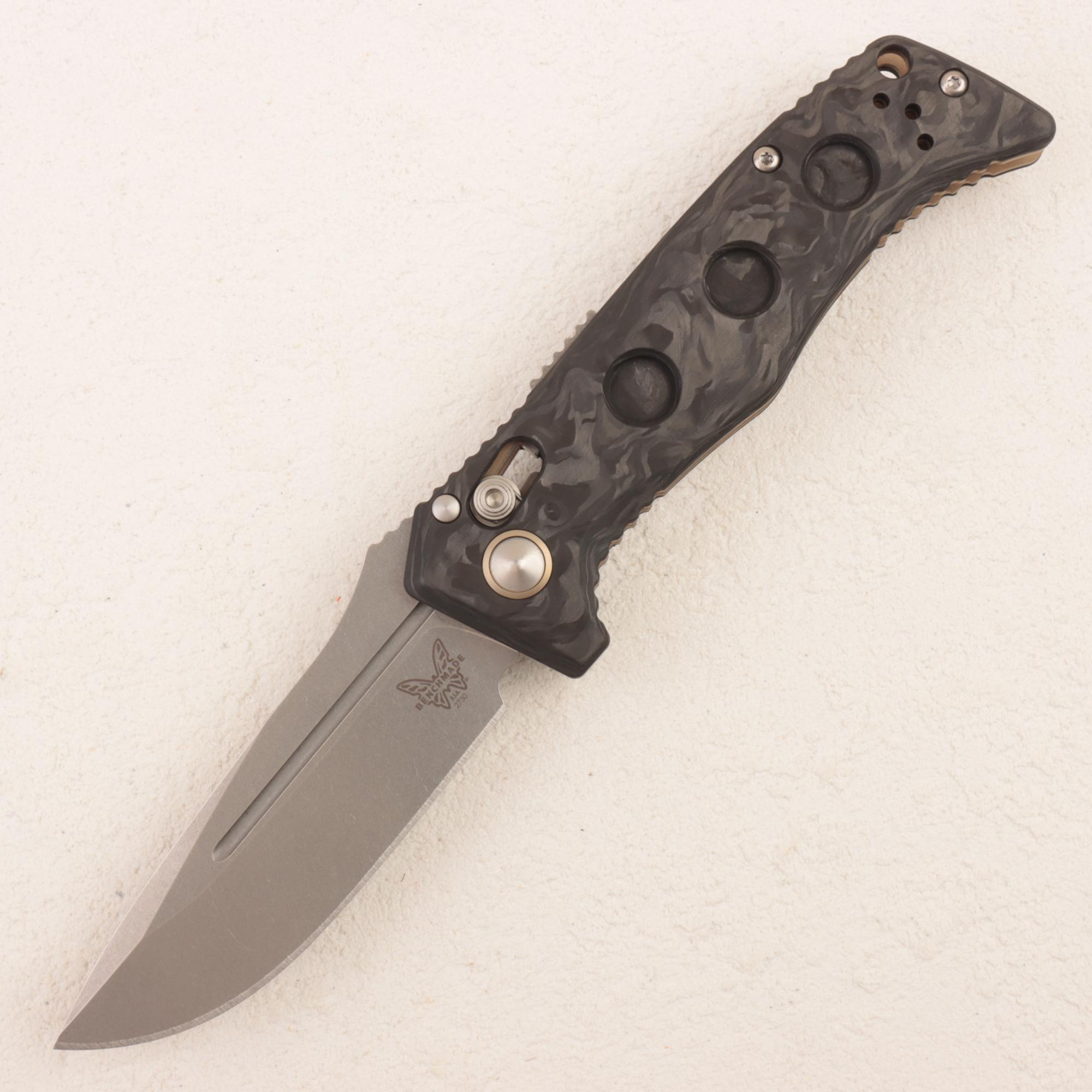 С точки зрения механики это именно автоматический AXIS Lock с предохранителем, то есть нож открывается быстро и уверенно, сохраняя при этом фирменную для Benchmade двустороннюю механику. Клипса глубокого ношения переставляется и рассчитана на ношение острием вверх, что делает модель удобной и для правши, и для левши. В итоге Benchmade Mini Auto Adamas 2730-03 — это не просто компактный автомат, а премиальная версия одного из самых харизматичных ножей Benchmade: с сильной дизайнерской родословной, современной сталью MagnaCut, карбоновой рукоятью и характером небольшого, но очень серьезного рабочего инструмента.