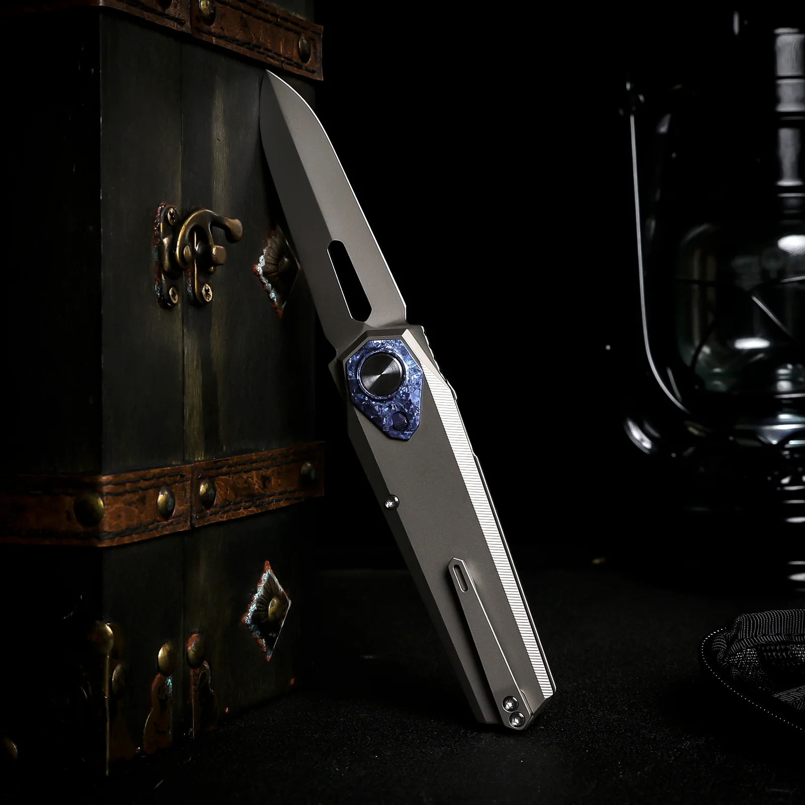 RTIP-G — вариант с более ярким и декоративным характером. Рукоять здесь выполнена в синем анодированном титане, а акценты у кнопки и осевого узла имеют бронзовый оттенок. Хороший выбор для тех, кому нужен Infinite Power с более заметной и нарядной внешностью.