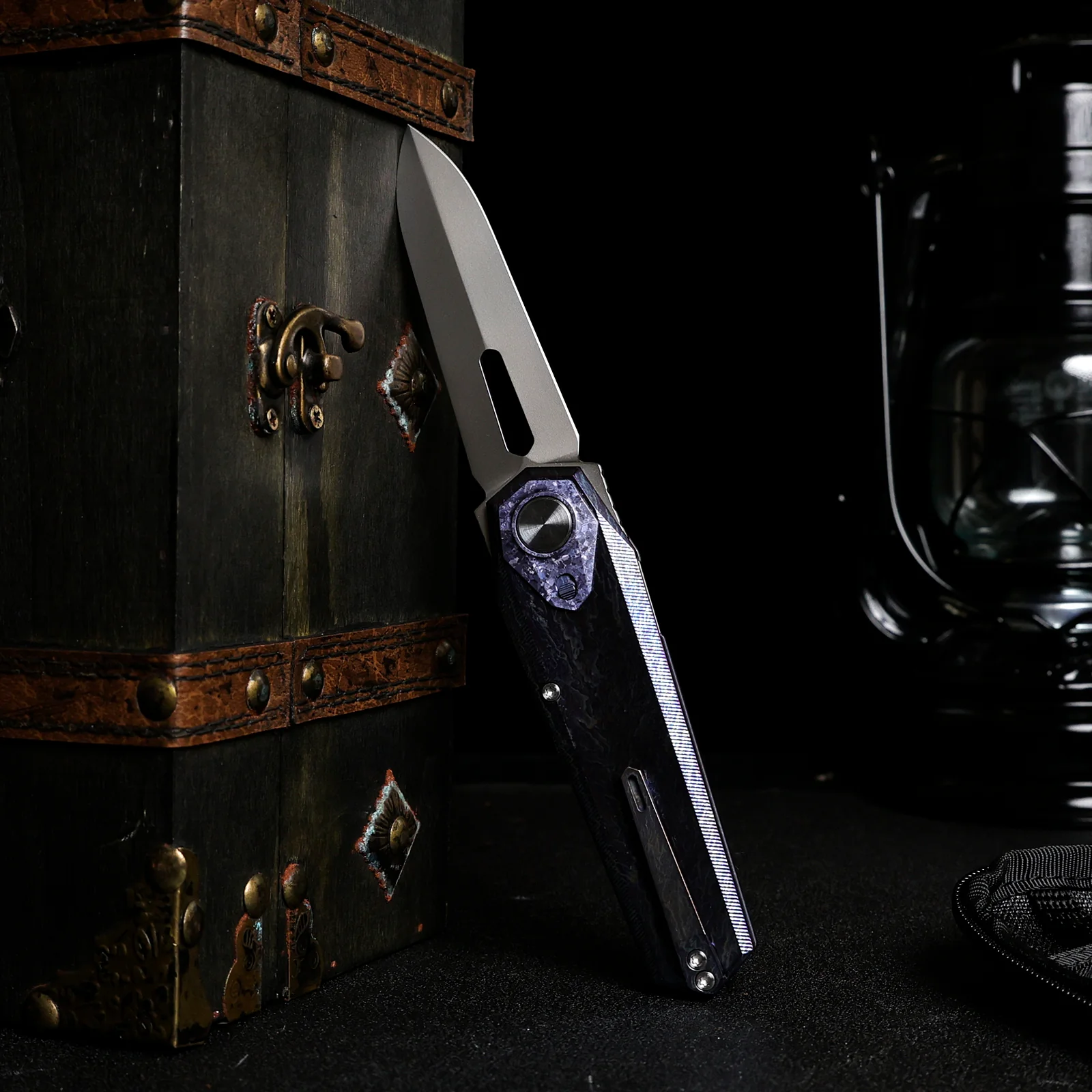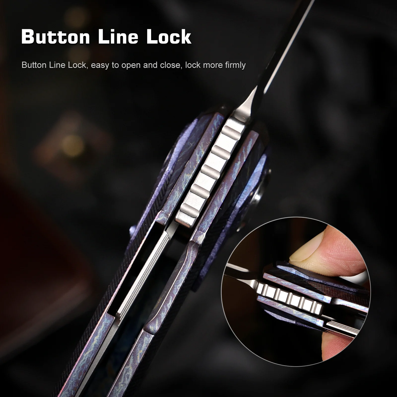 RTIP-D — версия с максимально строгой и контрастной подачей: здесь используется черное DLC-покрытие на клинке и черная титановая рукоять, а акцент в районе кнопки и осевого узла выполнен в сине-кристаллизованном стиле. Это один из самых «темных» и визуально собранных вариантов в серии.