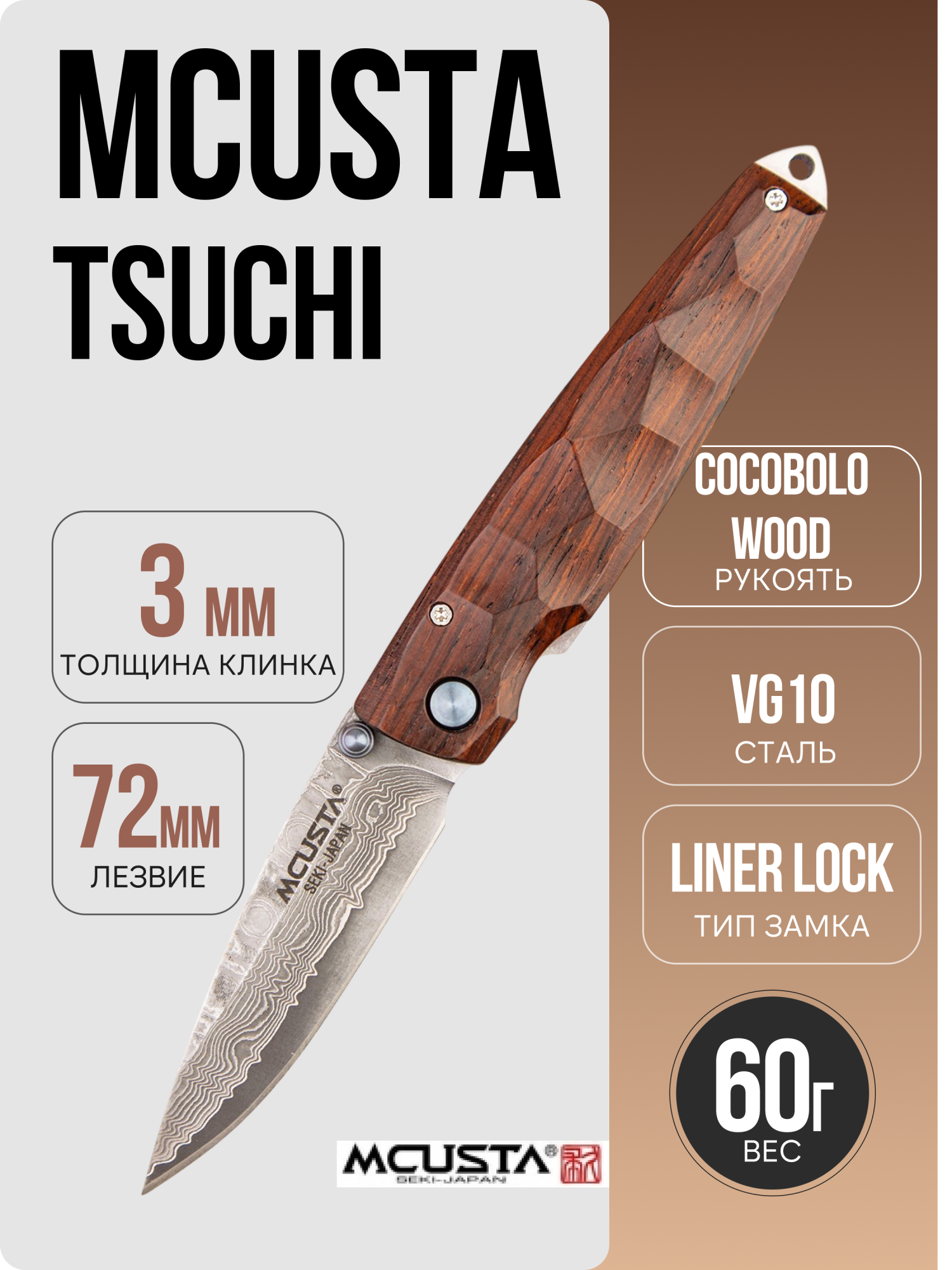 Общая длина ножа составляет 165 мм, а вес — всего 60 грамм, что делает его идеальным спутником для походов, путешествий или повседневного использования. Нож Mcusta Tsuchi украсит коллекцию любителя ножей и станет незаменимым инструментом в любой ситуации.