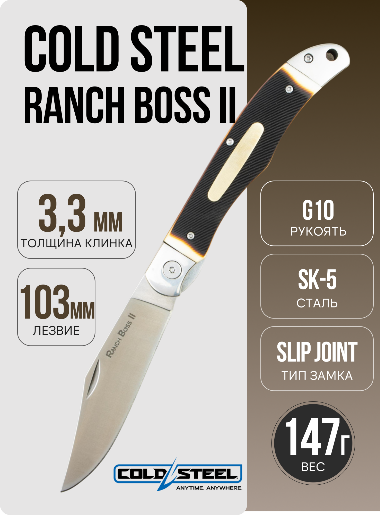 Нож Cold Steel Ranch Boss II разработан для активного использования на фермах и ранчо, где требуются надежность и универсальность. Этот складной нож сочетает в себе долговечность, практичность и стиль, делая его идеальным выбором для тех, кто ищет качественный инструмент для ежедневной работы и активного отдыха.