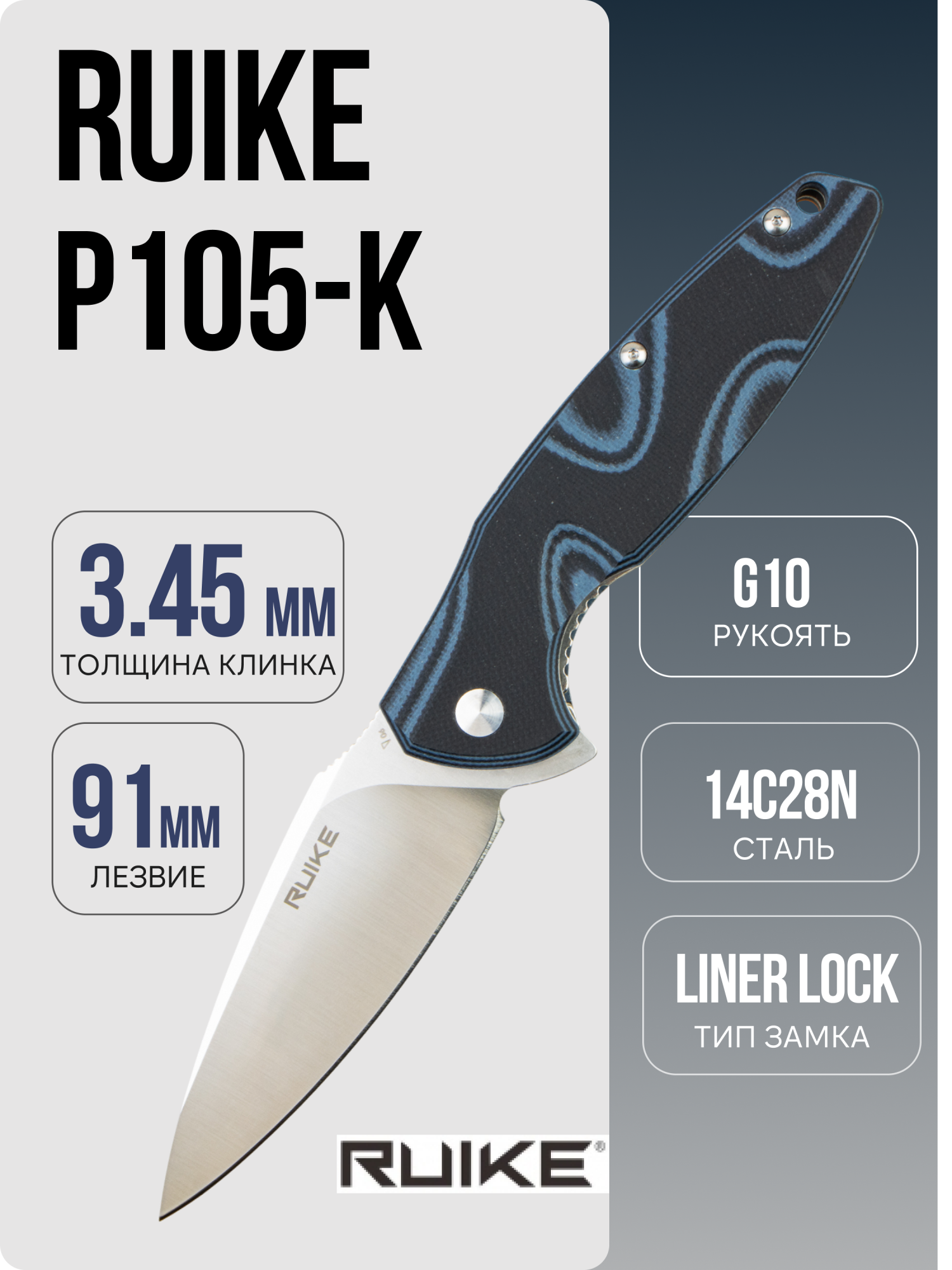 Складной нож Ruike Fang P105 является идеальным выбором для тех, кто ищет надежный и многофункциональный инструмент для активного отдыха и повседневного использования. Этот нож отличается высокой прочностью, удобством в эксплуатации и простотой в уходе, делая его отличным компаньоном как для рыбаков, так и для путешественников.