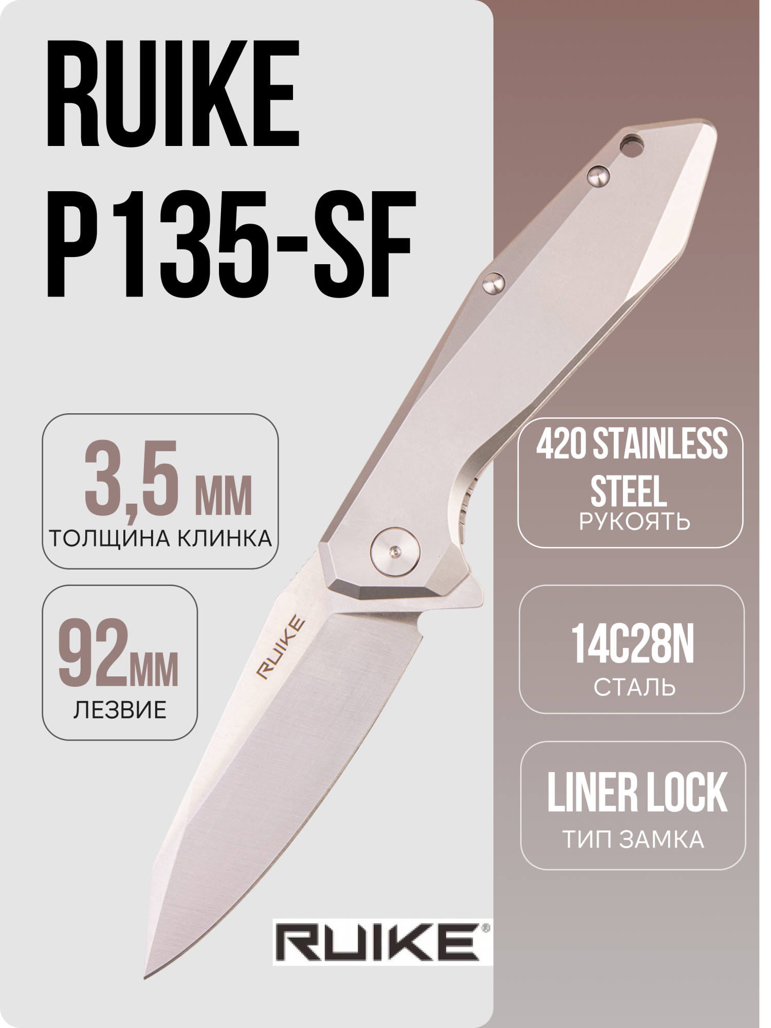 Складной нож Ruike P135-SF выделяется в линейке своего бренда как крупный и мощный инструмент, способный выдерживать повышенные нагрузки и отлично подходящий как для природных походов, так и для ежедневного использования.