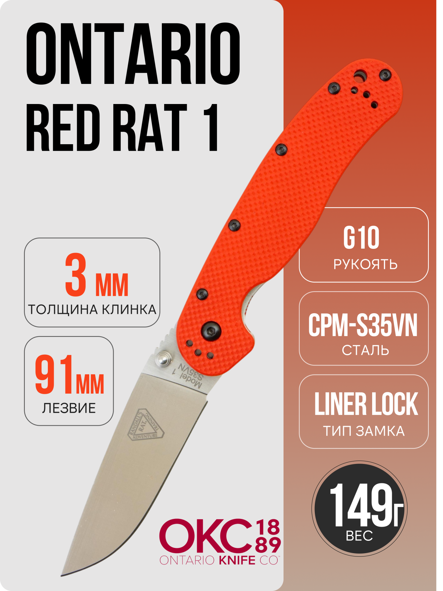 Нож Ontario Red RAT-1 с артикулом 8864 является одной из самых популярных моделей в линейке складных ножей от компании Ontario Knife Company (OKC), но, в отличии от других ножей линейки, выделяется на фоне других благодаря использованию премиальных материалов в его изготовлении.